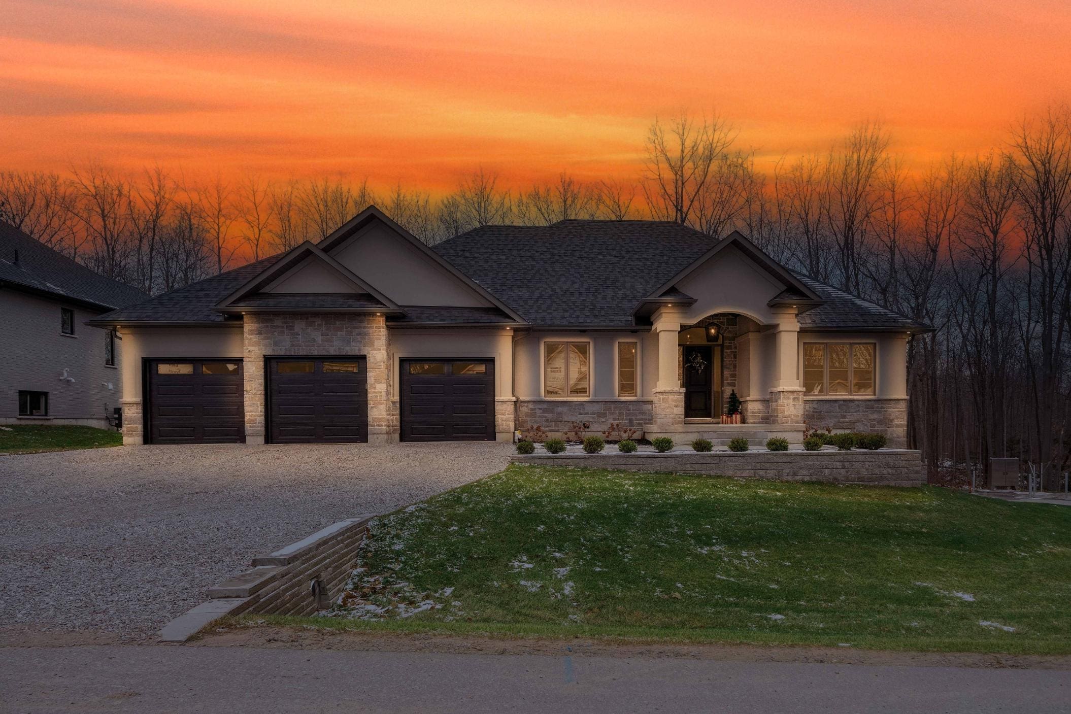 There is a “feel’ to a custom home beyond the many details of premium construction and finish that you will experience here. We urge you to come and experience that yourself. There are so many features that contribute to the grand experience of this home, for yourself and your guests. Walk through the impactful front entrance with stone/stucco pillars and views of the forest and valley into this custom recent build with 3 beds and 2 baths. 2072 sq ft on the main floor delivers luxury with very captivating impressions in finishing & light with a wall of windows and stone/gas fireplace in the dramatic vaulted great room. A double walkout basement with many above grade windows and tall ceilings provide extra views and light which takes away a basement feel with a large open area as a palette for your dream space (approx 1425 sq/ft) with R/I bar and bath and oak stairs leading to the main floor. There is a dramatic feel but also a cozy comfort in the great room with wide plank European Oak hardwood & 8×10 sliding walkout glass doors along the back wall of soaring windows to the deck with views to the forest. The forest! You have to walk in and see and feel the tranquility of that ravine and gentle stream. This lot is one of the best with no neighbours behind or beside. Gourmet custom kitchen with quartz throughout all the counters and the oversize island with valence lights, pot drawers, custom lighting, bar fridge R/I and a pantry! Large master wing with spa ensuite & standup glass shower, heated floor and soaker tub. Oversize windows throughout make the scenery surrounding a part of the experience in the home. Retreat to serenity on a massive walkout partially covered deck overlooking the very private treed greenspace on this premium culdesac lot. Walkup to garage inside entry. Inground sprinkler system to keep things green, 200 amp service and high speed internet. HDMI cable and R/I alarm/camera. All the bells and whistles here.